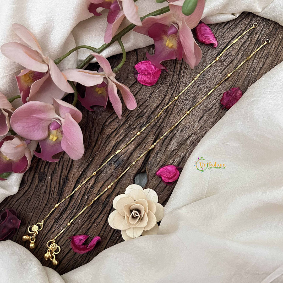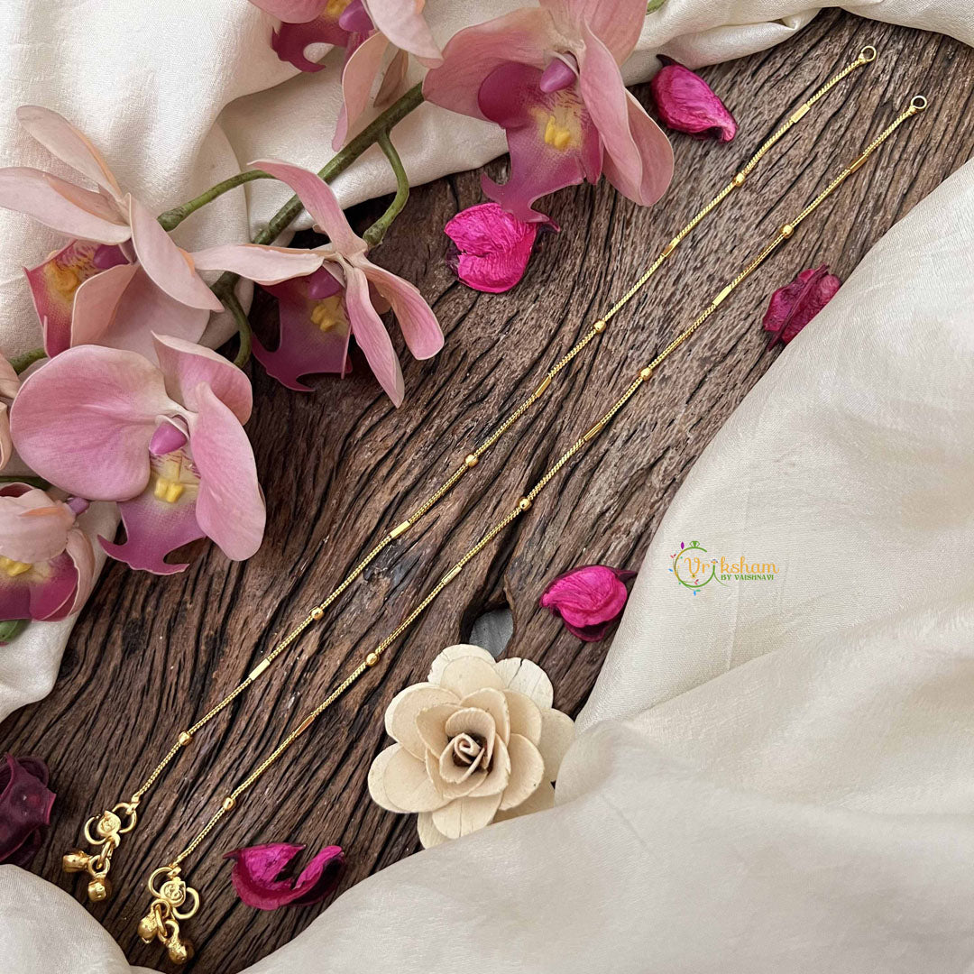 Enhance your style with the Vriksham Simple Gold Look Alike Drop Line Anklets featuring elegant boll accents. These anklets blend minimalist design with a subtle shimmer, offering a refined and sophisticated accessory. Lightweight and versatile, they effortlessly complement both casual and formal looks with timeless charm.