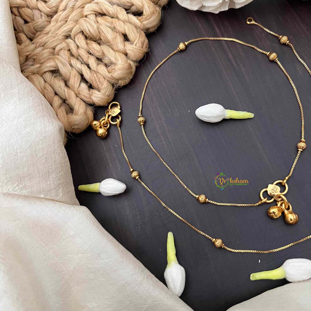 Experience understated elegance with these simple golden chain anklets, adorned with delicate dot accents. The streamlined design celebrates minimalist beauty, featuring a warm golden finish that radiates quiet sophistication. Each dot detail is thoughtfully placed to create visual interest without overwhelming the piece. Versatile enough for daily wear yet refined enough for special occasions, these anklets complement any style effortlessly. Ideal for those who prefer jewelry that speaks through restraint and timeless design rather than bold statements.