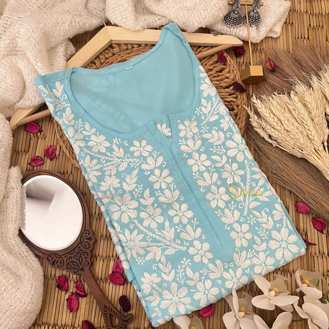 Indulge in the delicate luxury of Vriksham's Sky Blue Chikankari Kurtis. Hand-crafted with intricate embroidery, these kurtis exude elegance and sophistication. Elevate your style with this exclusive piece that combines tradition with modernity. Available now in a beautiful Sky Blue shade.