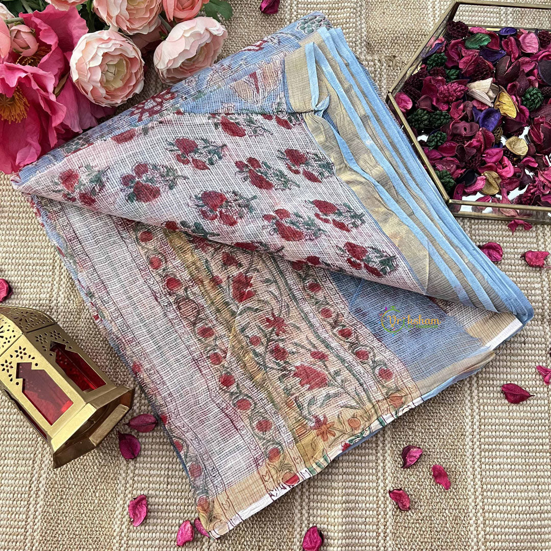 Discover artisanal beauty with this captivating Kota cotton saree, showcasing serene sky blue adorned with delicate floral motifs created through traditional hand block printing. The tranquil blue tone provides a refined foundation, while the hand-printed florals add authentic character and artistic charm to each unique piece. Crafted from premium Kota cotton, this saree delivers exceptional breathability and a naturally elegant drape that enhances your silhouette with grace. The lightweight fabric ensures superior comfort throughout extended wear, making it ideal for warm climates and all-day occasions. The hand block printing technique imparts distinctive individuality to every saree, celebrating time-honored textile artistry and sustainable craftsmanship. The versatile sky blue pairs beautifully with various blouse colors and accessories, offering remarkable styling flexibility. Perfect for those who appreciate authentic heritage techniques, cultural artistry, and quality construction, this saree seamlessly transitions from casual elegance to formal celebrations. An investment piece that honors traditional methods while delivering modern comfort, timeless style, and the enduring appeal of thoughtfully crafted ethnic wear.