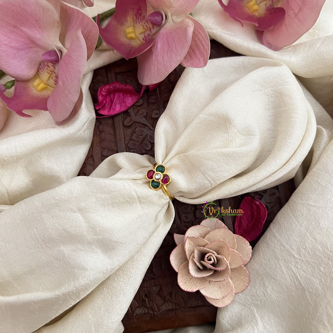 Vriksham Small Flower Jadau Kundan Finger Ring-Red Green-J3673