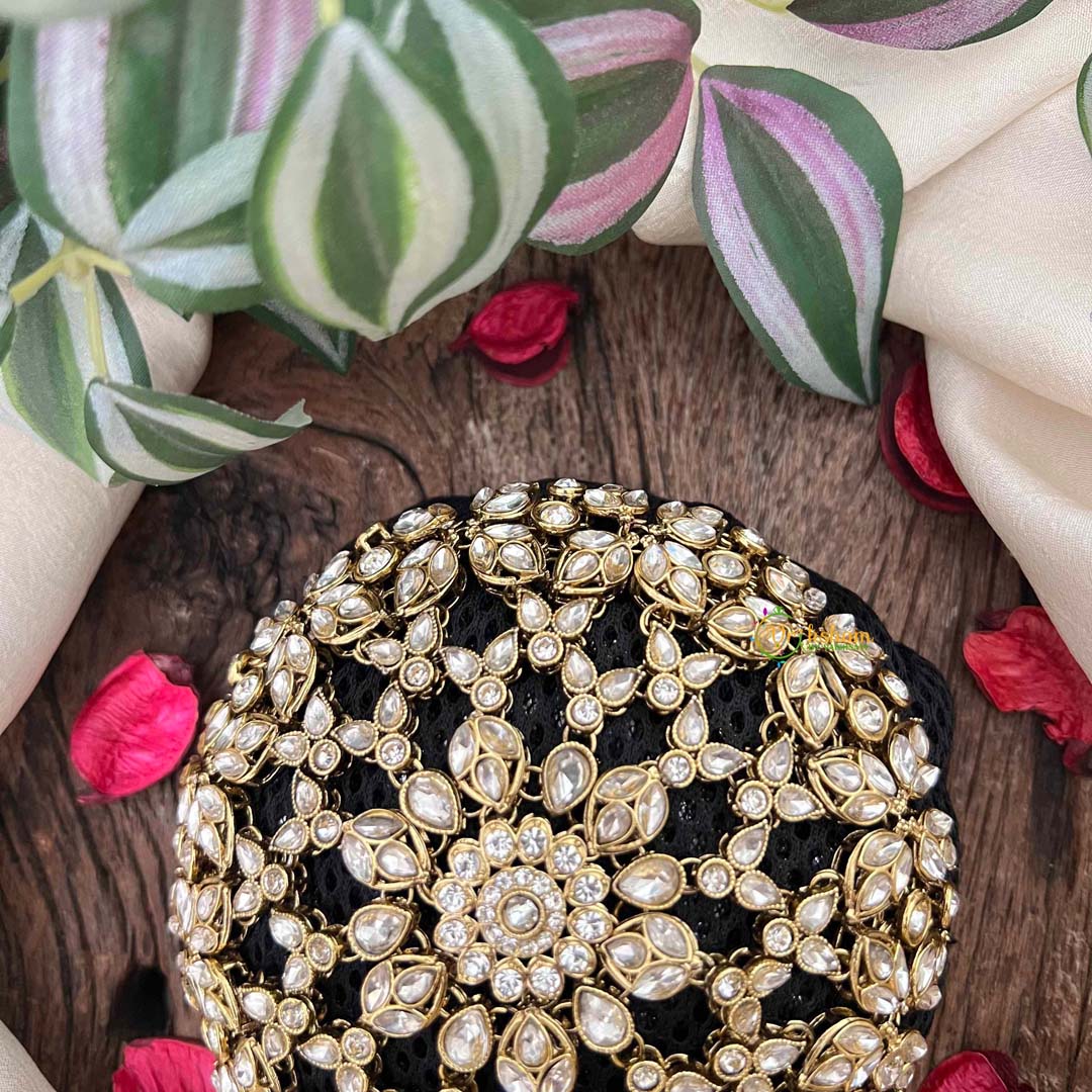 Captivate with this dazzling juda net, where radiant starburst patterns meet elegant teardrop stone accents in a mesmerizing display of light and brilliance. Each carefully placed stone creates a dynamic, multidimensional effect that catches and reflects light beautifully. This sophisticated bun cage accessory combines secure functionality with show-stopping glamour, transforming your hairstyle into a luminous focal point. Ideal for weddings, festive celebrations, and special occasions, this piece embodies contemporary sparkle with timeless elegance, offering both comfort and confidence-boosting beauty that commands admiration.
