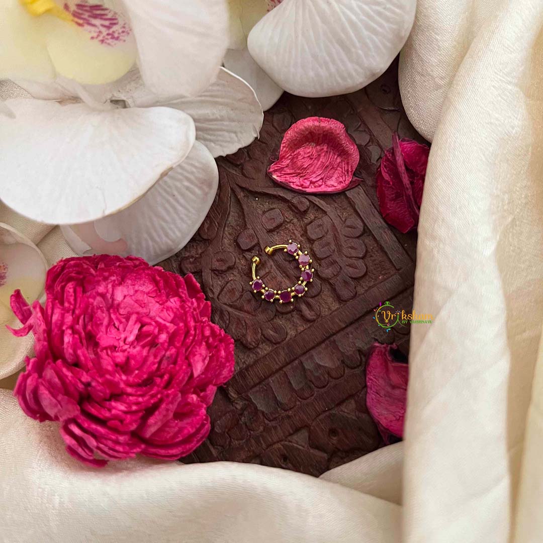 Radiate timeless sophistication with this striking square seven-dot gold-plated septum ring, a refined fusion of geometric precision and Indian bridal heritage. The elegant square setting showcases seven brilliant red AD stones that glow with passionate warmth against the luxurious gold plating. Each carefully positioned stone reflects masterful artisanal craftsmanship, creating an accessory that commands attention with understated grace. Perfect for weddings, festivals, and cherished celebrations, this distinguished piece brings authentic cultural elegance and contemporary style to your personal adornment. A coveted treasure that celebrates the beauty of traditional design elevated with modern sensibility.