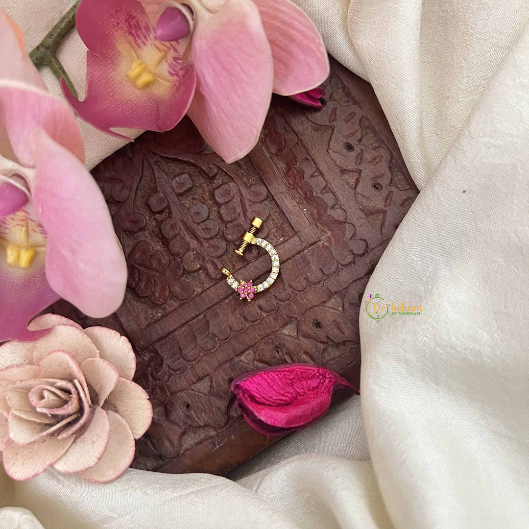 Vriksham Star Half Circle Press Naths/Nose Pin-Red White-G20727