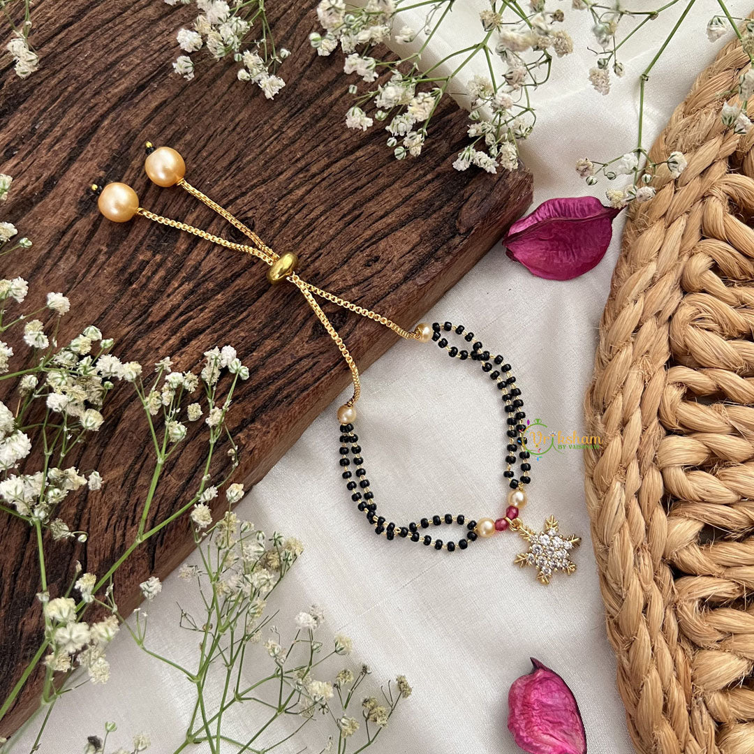 For more such pieces visit, https://vrikshamindia.com/products/vriksham-designer-ad-stone-flower-mangalsutra-bracelet