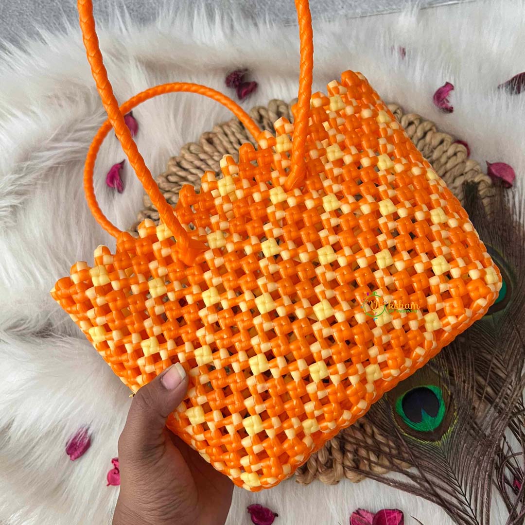 Radiate warmth and elegance with this stunning hand-woven tote featuring a captivating sunburst pattern in vibrant orange and soft off-white lattice design. The dynamic interplay of colors creates visual movement while maintaining refined sophistication, making it an exceptional statement piece for the discerning individual. Crafted through traditional hand-weaving techniques, this tote showcases exceptional artisanal quality and structural integrity built to endure. The thoughtfully designed silhouette provides ample capacity for daily essentials while the intricate lattice construction adds textural depth and visual interest. Perfect for those who appreciate bold artistic expression paired with functional design, this bag seamlessly transitions from practical shopping companion to fashion-forward accessory, celebrating authentic craftsmanship and timeless aesthetic appeal.