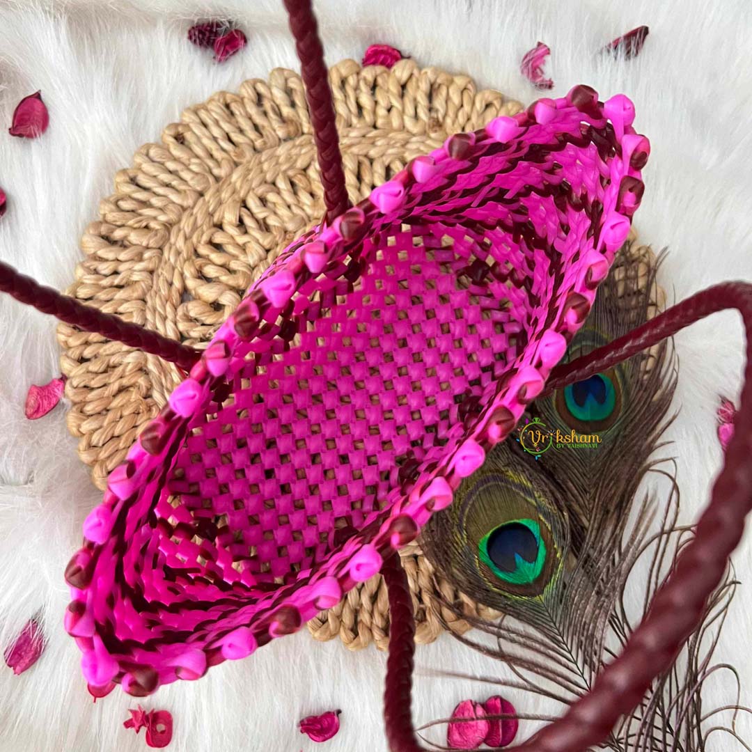 Indulge in luxurious sophistication with this beautifully hand-woven tote featuring an alluring sunburst pattern in rich pink and deep maroon lattice design. The sumptuous color combination evokes elegance and refinement, creating a distinctive accessory that commands attention while maintaining understated grace. Constructed through meticulous hand-weaving techniques, this tote delivers exceptional artisanal quality and structural resilience designed for lasting use. The expansive interior provides generous capacity for your daily essentials, from market finds to travel necessities, all while preserving a polished silhouette. Perfect for the discerning individual who values heritage craftsmanship and distinctive design, this piece seamlessly transitions across occasions, serving as both a practical companion and a fashion statement that celebrates timeless aesthetics and authentic artisanal excellence.