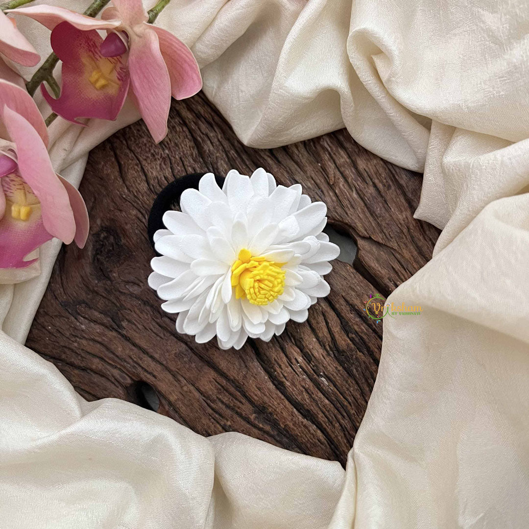 The Vriksham Sunshine Petal White Flower Hair Rubber offers a refined way to secure your hair while adding a subtle floral charm. Featuring delicate white petals, this hair accessory combines practicality with an elegant design, perfect for enhancing your hairstyle with a touch of sophistication. Ideal for both everyday wear and special occasions.