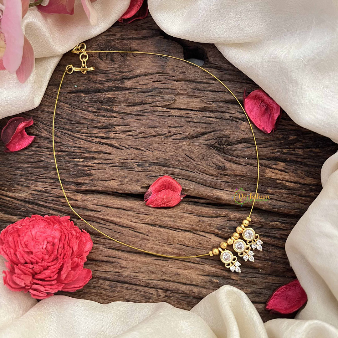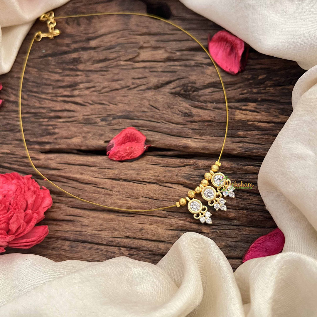 Vriksham Traditional 3 Round & Leaf Pendant Invisible Chain-White-G20610
