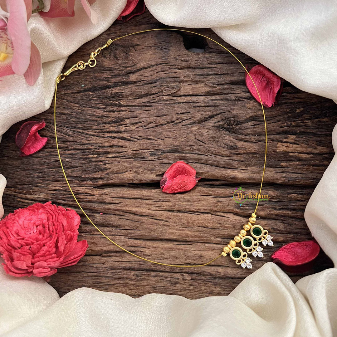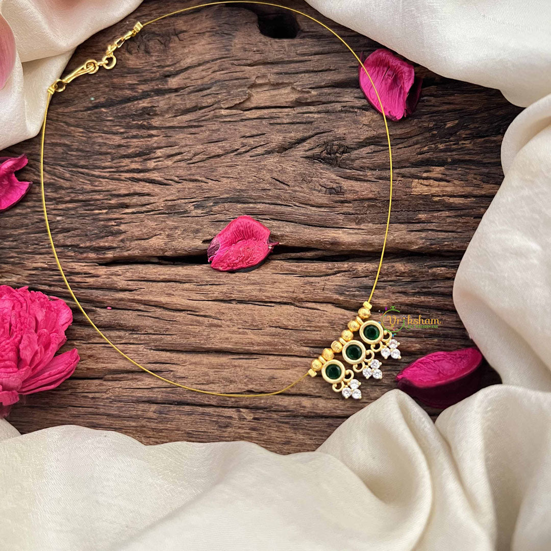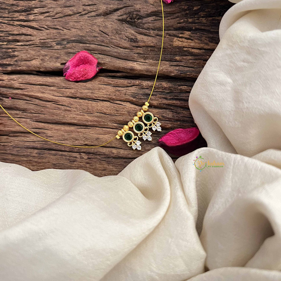 Vriksham Traditional 3 Round & Leaf Pendant Invisible Chain-White Green-G20609