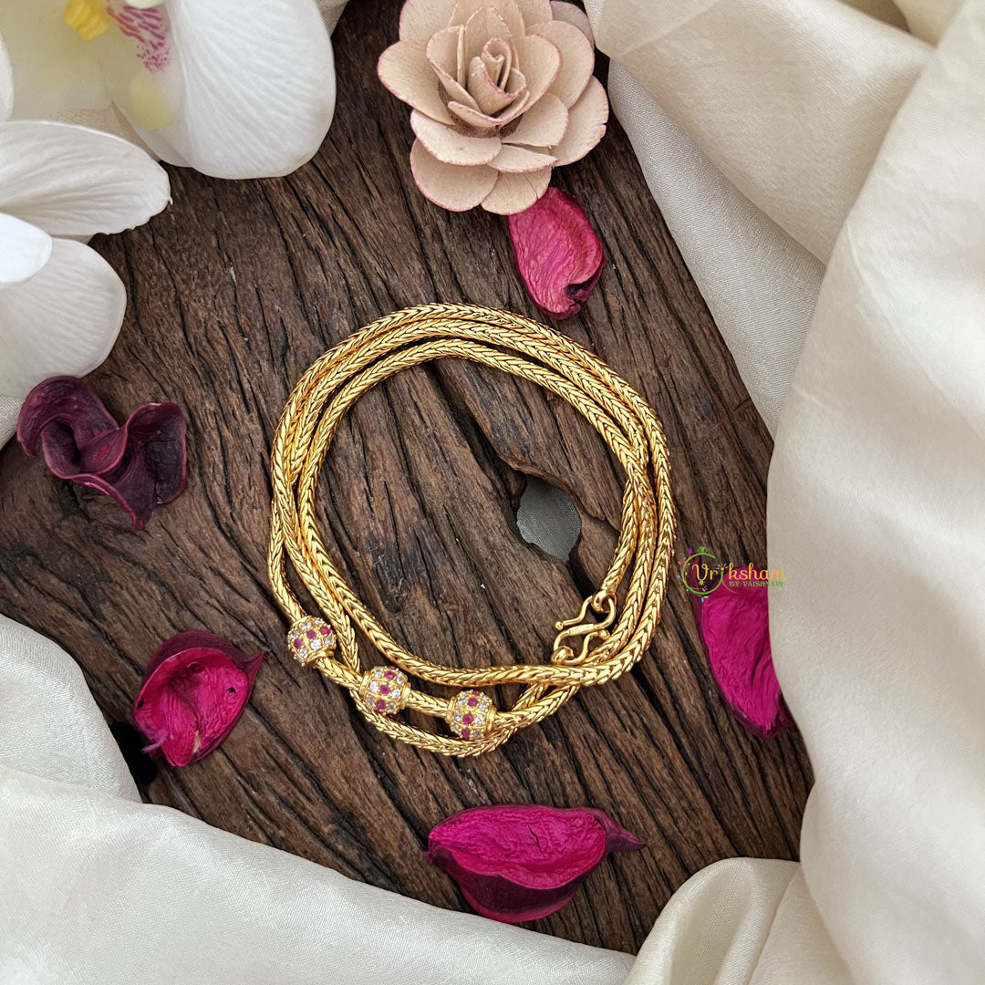 Vriksham Traditional AD Stone Mogappu Chain-White Red-G17783