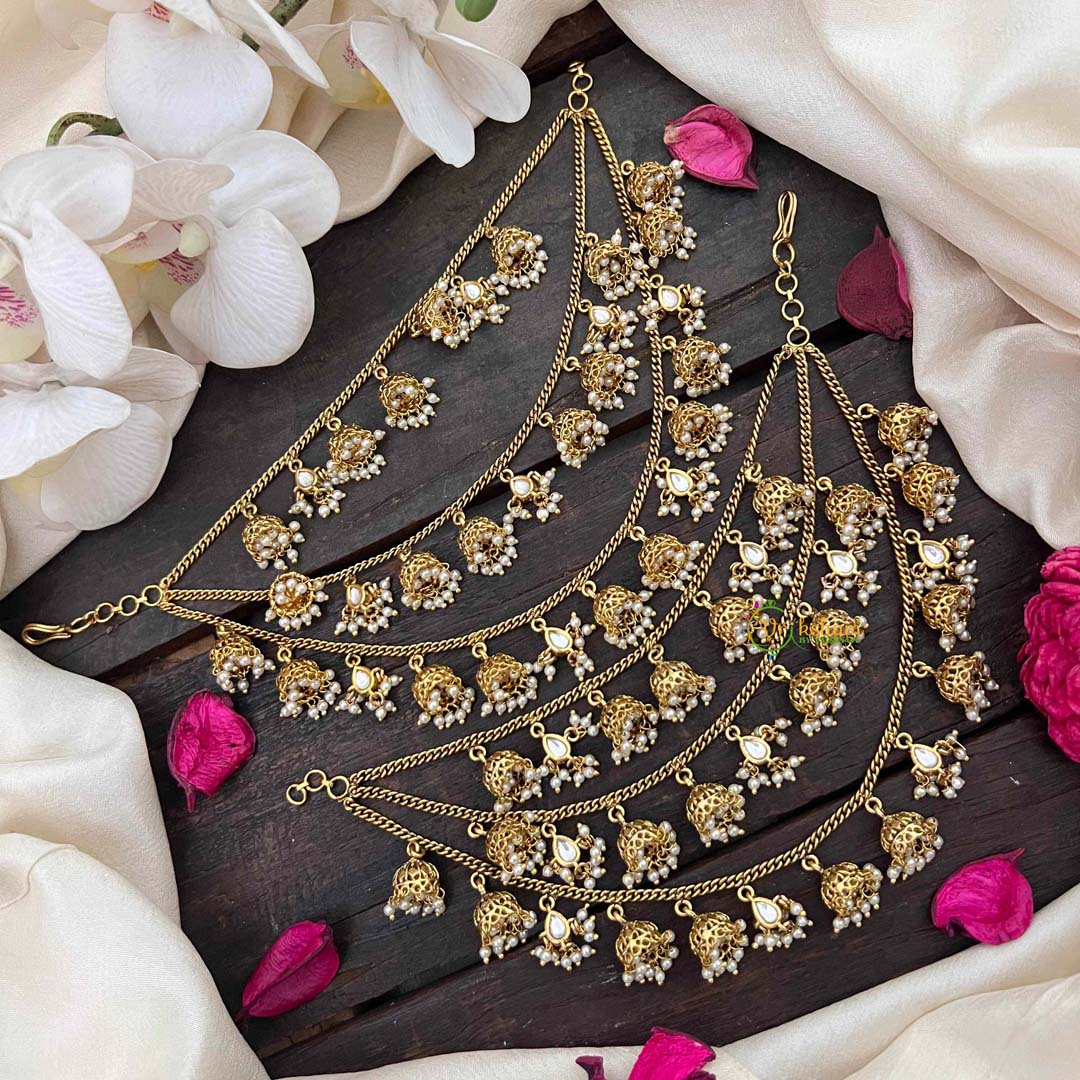 Embrace timeless elegance with these Traditional Bahubali 3 Layered Pearl Jhumkas, crafted in a graceful drop style. Each earring features lustrous pearls arranged in three delicate layers, creating dimension and movement with every turn of your head. The sophisticated Maatil design showcases authentic craftsmanship, making these jhumkas an ideal choice for festive occasions, weddings, or elevating your everyday ethnic wear. The pearl detailing adds a refined touch while the drop silhouette flatters all face shapes. Perfect for those who appreciate traditional jewelry with contemporary appeal.