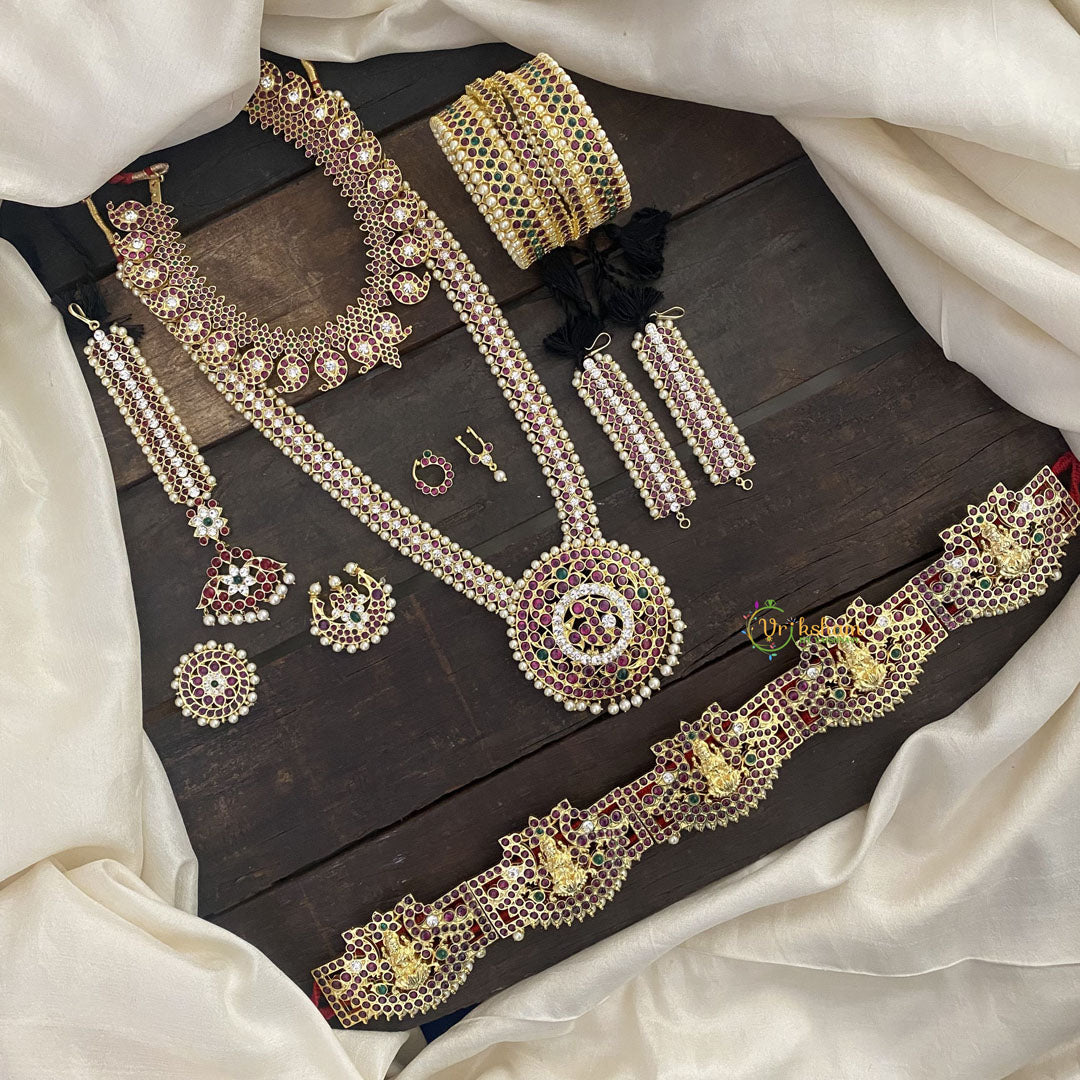 Elevate your bridal style with the Vriksham Traditional Kemp Bridal Set. Made with the finest materials and intricate detailing, this set exudes elegance and luxury. The traditional kemp design adds a touch of cultural richness, making it the perfect choice for brides looking for a stunning and timeless look on their special day.