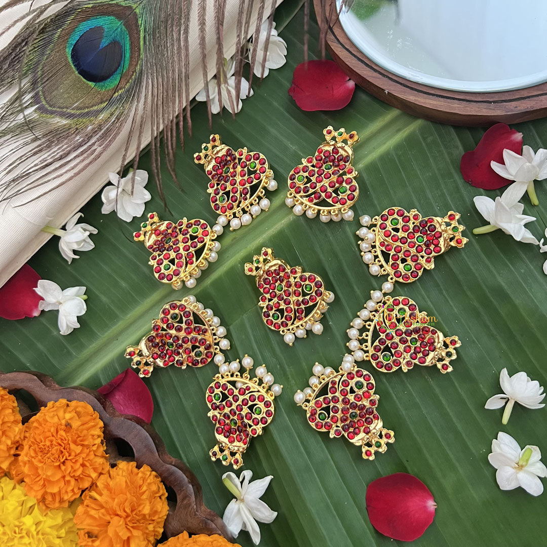 Elevate your traditional attire with the Vriksham Traditional Kemp Kumudha Jadai Billai set. Featuring a harmonious blend of red, green, and pearl accents, this exquisite nine-piece collection adds timeless elegance and intricate charm to your hairstyle. Perfect for special occasions, it enhances your look with a refined touch of cultural heritage.