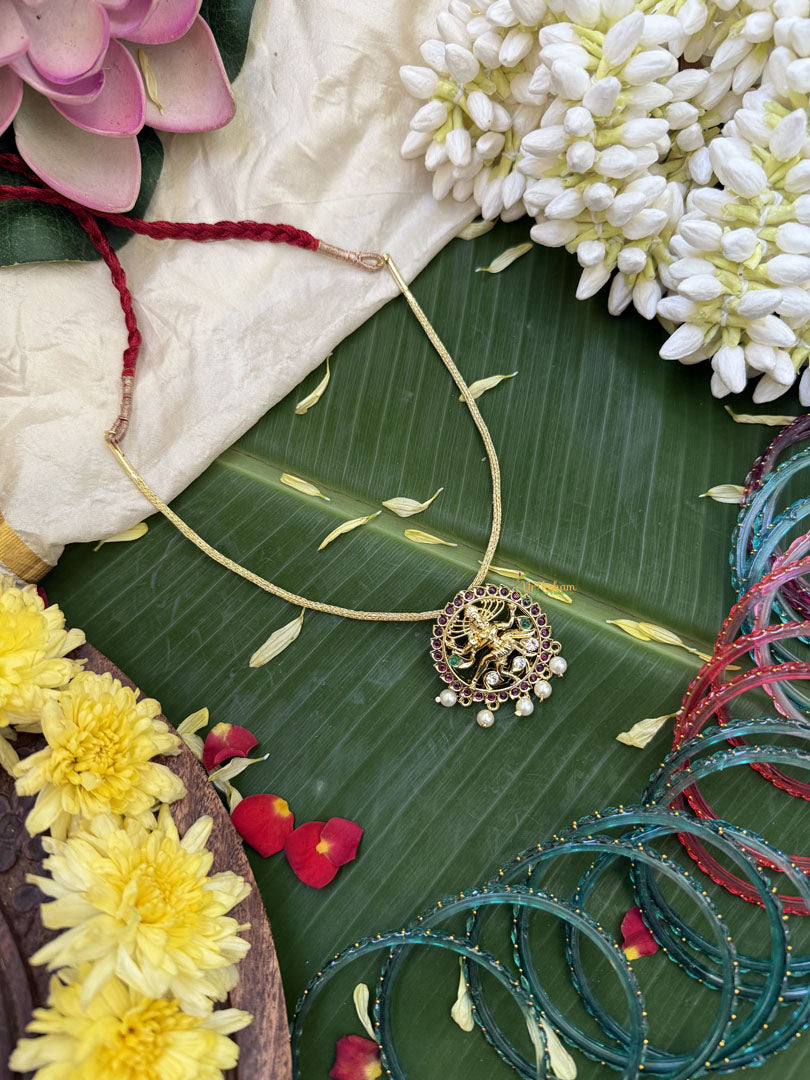Elevate your style with the Vriksham Traditional Kemp Nataraja Pendant Chain. Crafted with intricate detailing and traditional Kemp stones, this pendant exudes opulence and grace. A must-have for any fashion-forward individual looking to make a statement with their accessories. Embrace the world of art and luxury with this exclusive piece.