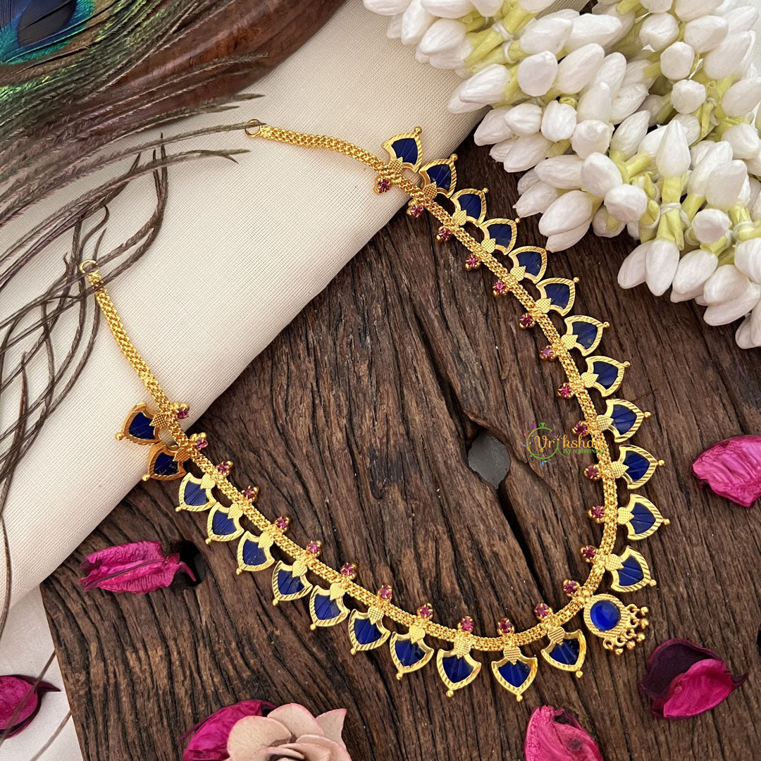 Embody divine beauty with Vriksham's luxurious Gold Look Alike Krishna Pendant and Kerala Palakka Neckpiece. Handcrafted with intricate details, this set exudes elegance and grace, perfect for any special occasion. Enhance your style and embrace the essence of traditional craftsmanship with this exquisite ensemble.