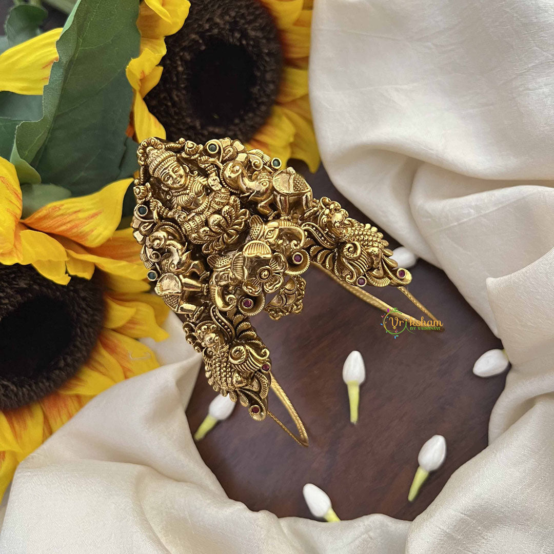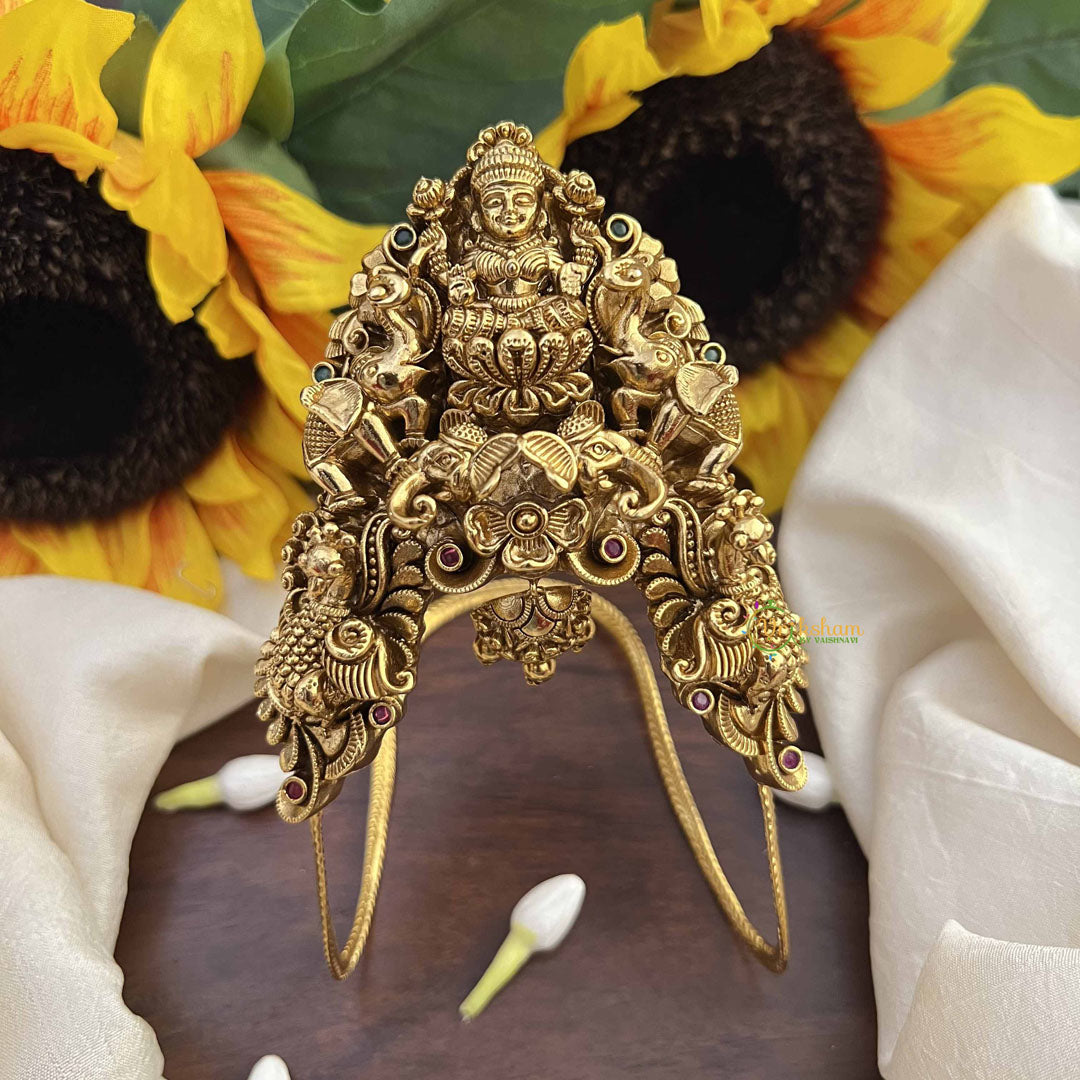 Honor timeless tradition with this Traditional Lakshmi Vangi Temple Armlet, a classic expression of devotion to the goddess of prosperity and grace. Rooted in centuries-old sanctuary jewelry heritage, this piece authentically embodies the ornamental elegance and spiritual reverence characteristic of temple design. The serene presence of Goddess Lakshmi is celebrated through meticulous craftsmanship that respects traditional aesthetics while maintaining refined sophistication. This meaningful armlet serves as a powerful spiritual companion, invoking Lakshmi's blessings of abundance, auspiciousness, and divine grace in your daily life. Perfect for those who cherish cultural authenticity and seek to honor sacred traditions, this piece seamlessly transitions from everyday devotional practice to significant religious occasions. The timeless design ensures enduring appeal, making it an invaluable heirloom-quality treasure that strengthens your spiritual connection while celebrating the rich heritage of temple jewelry artistry. An essential addition to any devoted practitioner's collection.