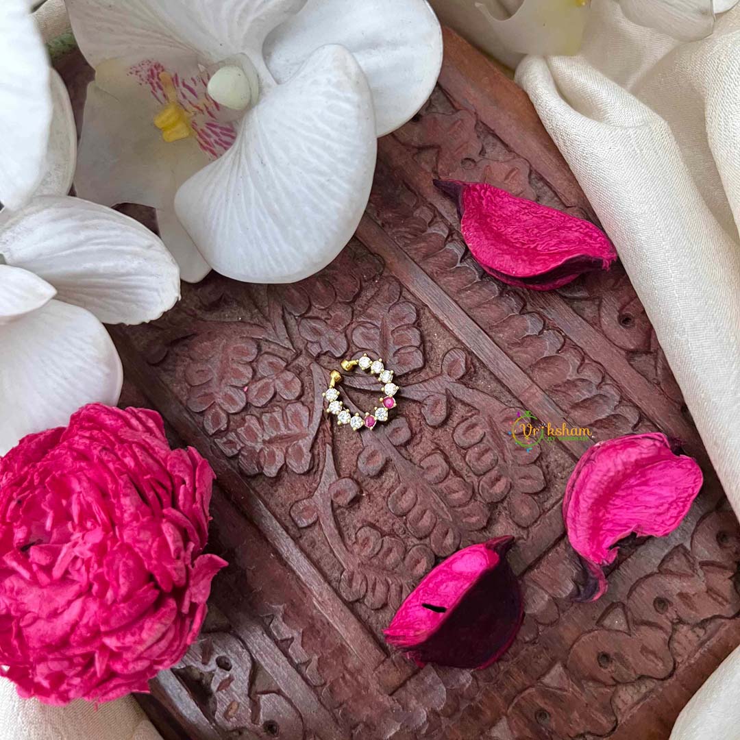 Celebrate timeless beauty with this traditional round stone septum ring, a masterpiece of Indian bridal jewelry craftsmanship. Featuring a striking combination of red and white AD stones arranged in a classic circular design, this piece radiates elegance and cultural authenticity. The carefully selected gemstones create a luminous focal point that catches light with graceful movement, while the meticulous setting demonstrates superior artisanal skill. Perfect for weddings, festivals, and special occasions, this sophisticated septum ring seamlessly complements traditional bridal attire and contemporary styling alike. An enduring symbol of refined taste and heritage artistry.