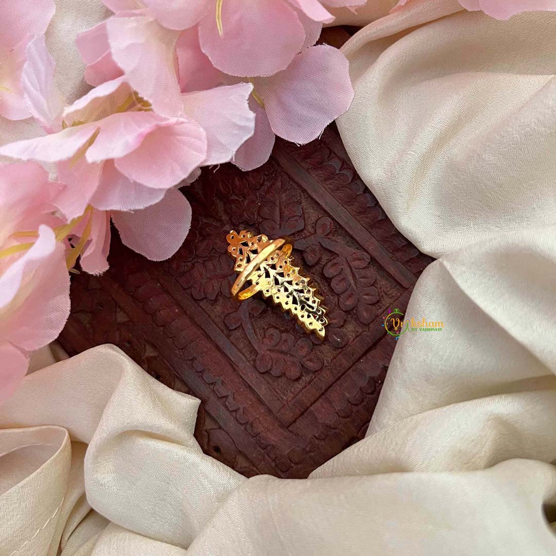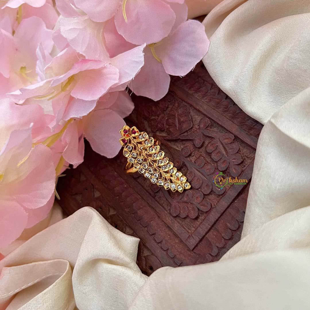 Embrace understated sophistication with this classic teardrop finger ring, featuring luminous red and white kemp stones in a timeless arrangement. The graceful teardrop contour exudes refined elegance, while the dual-tone gemstone palette creates a striking yet harmonious visual composition. Perfect for those who appreciate minimalist design with cultural depth, this ring transitions effortlessly from festive celebrations to refined daily wear. A distinguished piece that captures the essence of traditional artistry in a contemporary, wearable form.