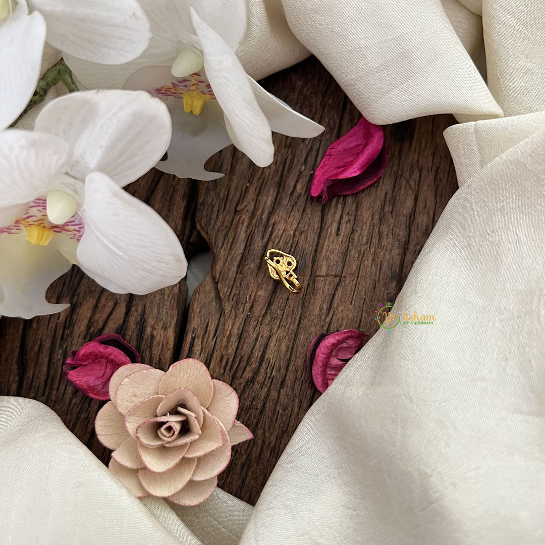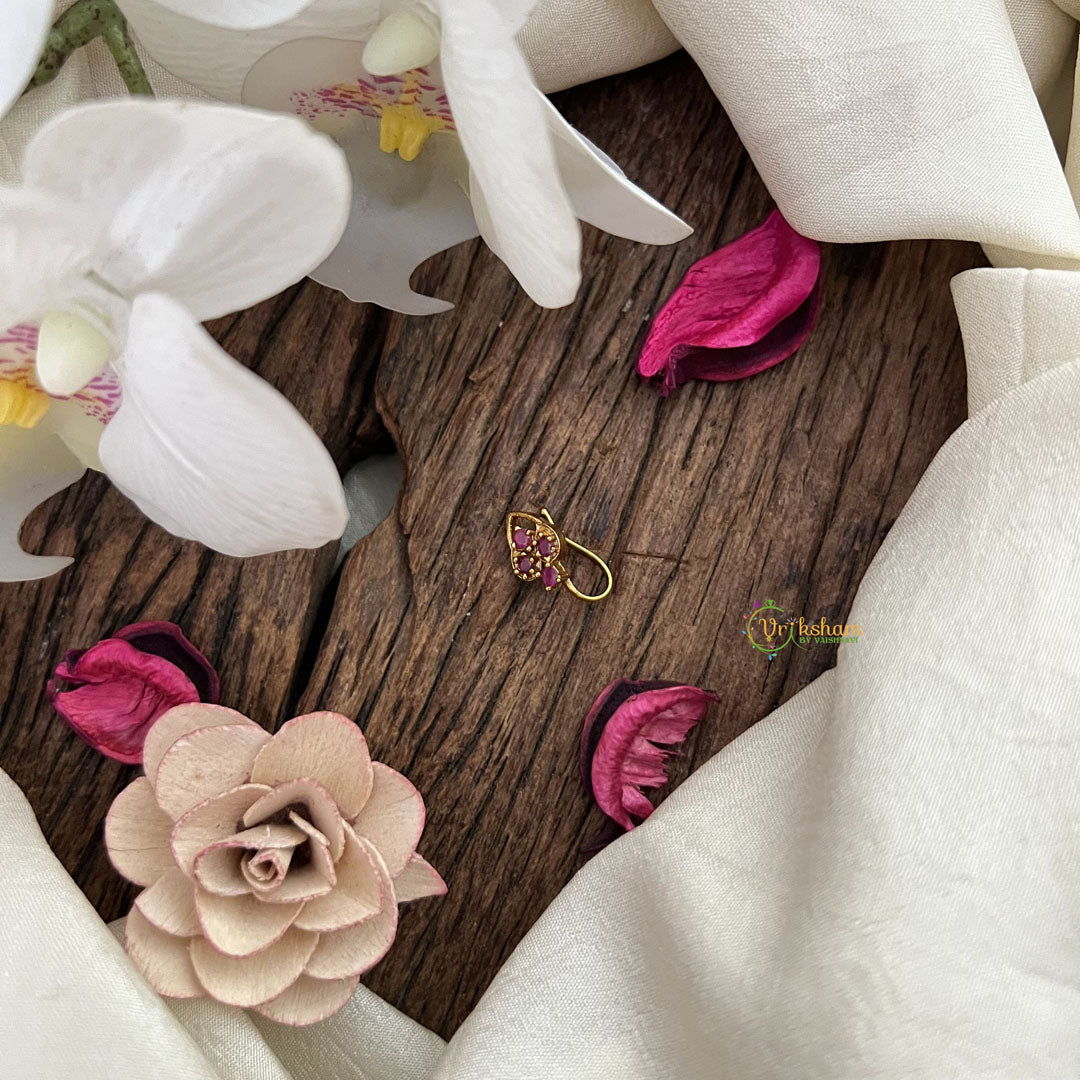 Elevate your traditional look with the Vriksham Trio Golden Naths in a striking red hue. Crafted with fine golden detailing, this elegant nose pin adds a refined touch to any ensemble. Its sophisticated design blends classic charm with contemporary style, perfect for special occasions or daily wear. Experience timeless beauty and subtle grace with this exquisite accessory.