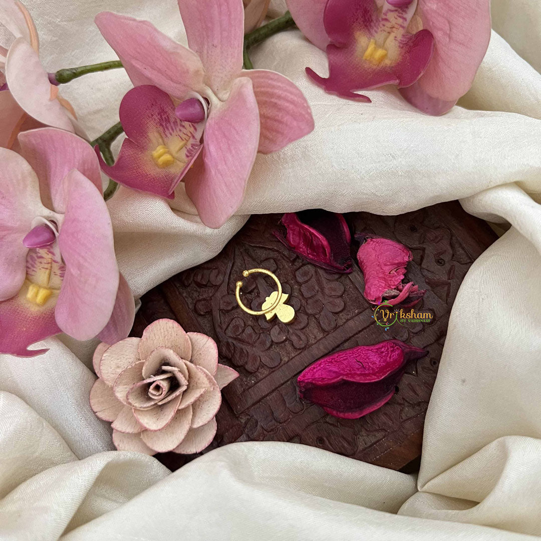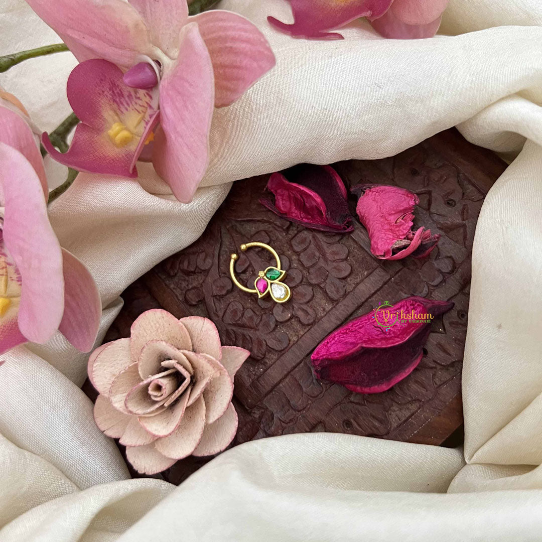 Golden Naths/Nose ring for Non - Pierced Nose. People who do not have piercing do not have to worry about not being able to wear naths. These nose rings helps people with non pierced nose also wear the same with a screw like holding. The moment you see the nath you will be able to understand how it will sit on the nose.
