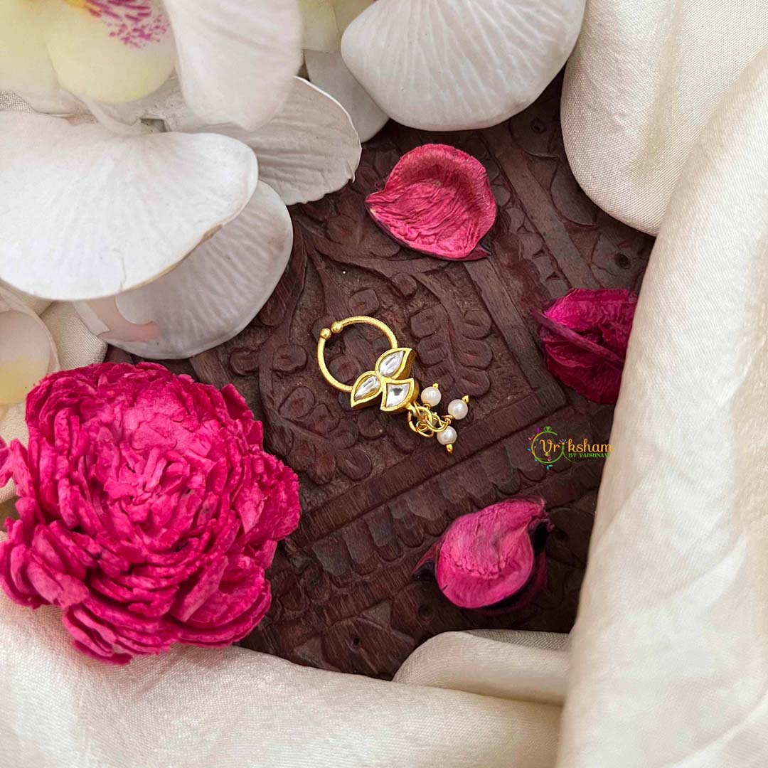 Golden Naths/Nose ring for Non - Pierced Nose. People who do not have piercing do not have to worry about not being able to wear naths. These nose rings helps people with non pierced nose also wear the same with a screw like holding. The moment you see the nath you will be able to understand how it will sit on the nose.