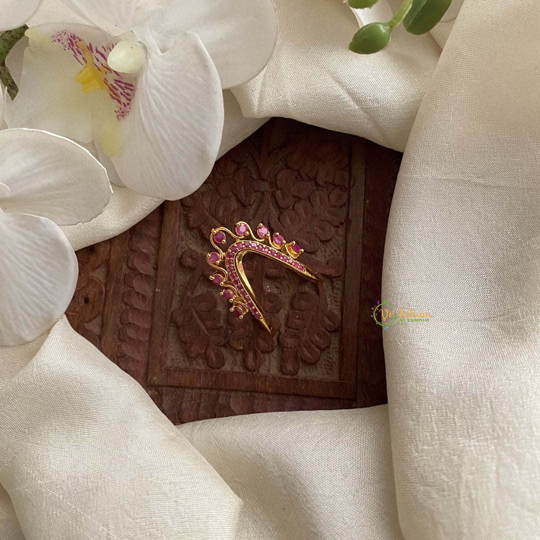 Vriksham Unique AD Stone Gold Look Alike Vangi Ring-Red-G16917