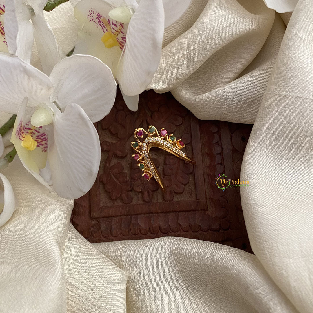 Vriksham Unique AD Stone Gold Look Alike Vangi Ring-Red,Green & White-G16916