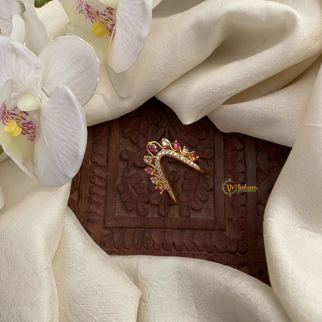Vriksham Unique AD Stone Gold Look Alike Vangi Ring-Red White-G16915