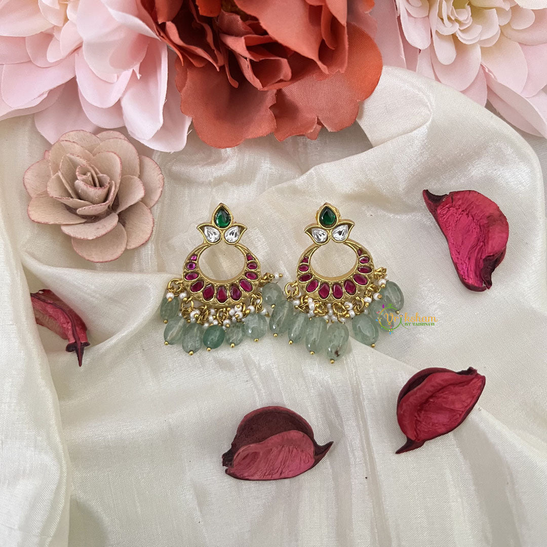 Immerse yourself in timeless elegance with Vriksham's Unique Chandbali Style Earrings. These distinguished ornaments feature lustrous pearls delicately arranged with vibrant red, green, and white elements, complemented by subtle pastel green beads. The classic Chandbali silhouette pays homage to traditional craftsmanship while offering contemporary refinement. Each pair is meticulously crafted to bestow a touch of regal sophistication to both festive ensembles and curated everyday attire.