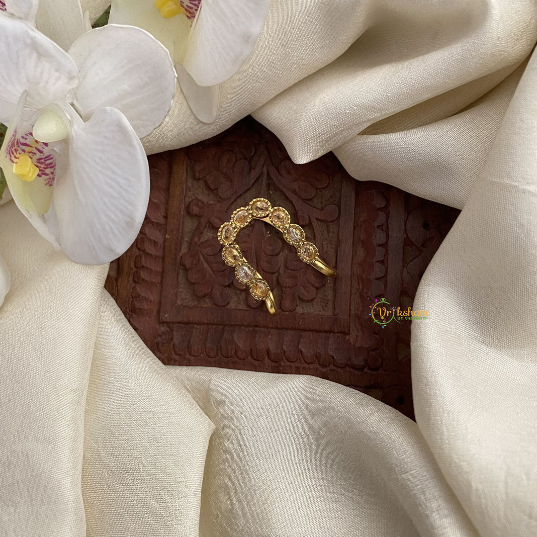 Elevate your style with Vriksham's Unique CZ Stone Vangi Ring in white. This exquisite ring features a stunning CZ stone that adds a touch of luxury to any outfit. Crafted with precision and attention to detail, this piece is a must-have for any fashion-forward individual looking to make a statement.