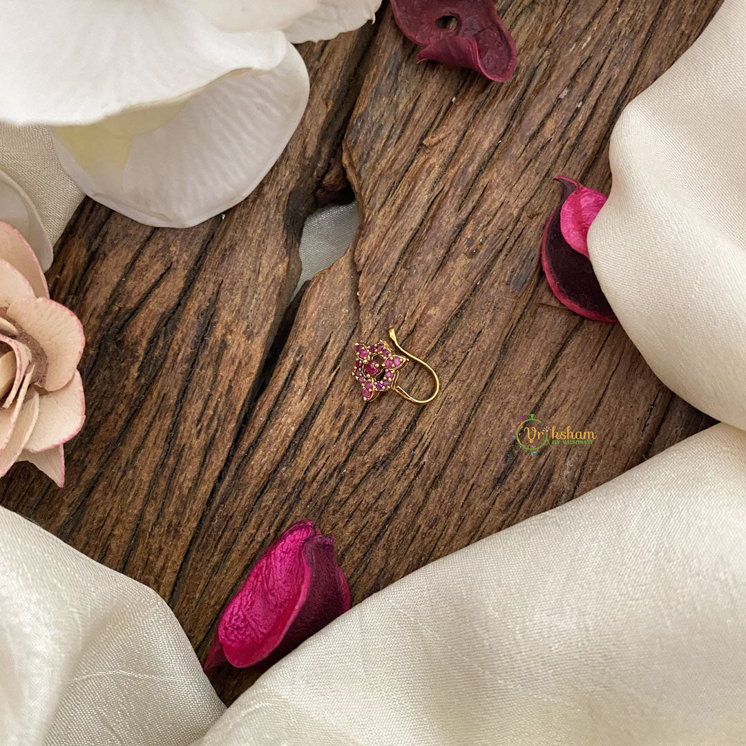 Elevate your look with our Vriksham Unique Designer AD Stone Nath/Nose pin in luxurious red. A one-of-a-kind piece, adorned with sparkling stones, for a touch of sophistication and refinement. Perfect for any occasion, this nose pin will surely make a statement and set you apart.