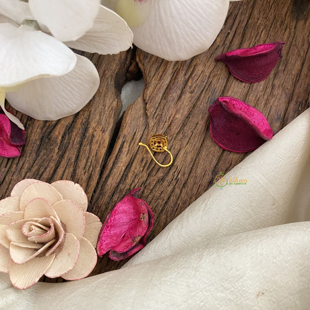 Indulge in luxury with Vriksham's Unique Designer AD Stone Nath. This premium nose pin adds a touch of sophistication to your everyday look. The stunning red color and intricate design make it a must-have accessory for any fashion-forward individual. Elevate your style with the exclusivity of Vriksham.