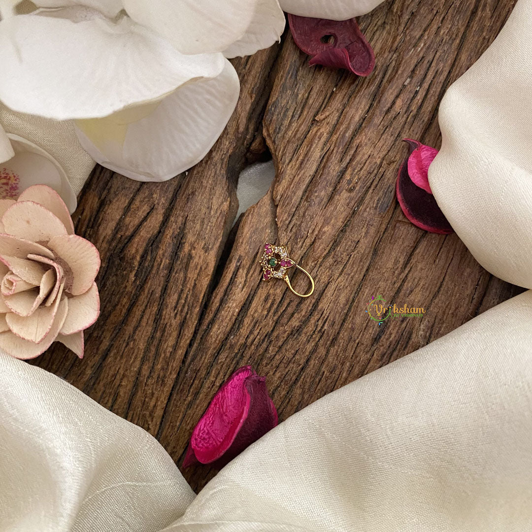 Elevate your look with our Vriksham Unique Designer AD Stone Nath/Nose pin in luxurious red white & green. A one-of-a-kind piece, adorned with sparkling stones, for a touch of sophistication and refinement. Perfect for any occasion, this nose pin will surely make a statement and set you apart.