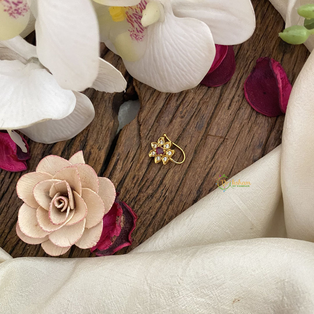 Vriksham Unique Floral AD Stone Nath/Nose pin-White Red-G17370