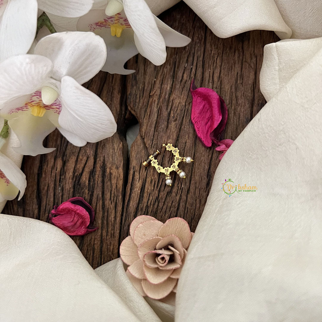 Elevate your elegance with the Vriksham unique Flower Naths featuring a striking red white pearl centerpiece. This finely crafted nose pin blends traditional charm with contemporary design, perfect for adding a subtle yet sophisticated touch to any ensemble. Its delicate floral motif enhances your natural beauty while offering a timeless accessory for special occasions or everyday grace.