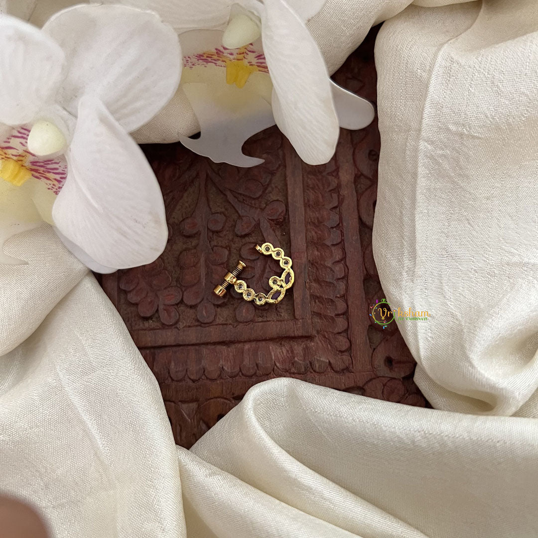Introducing the Vriksham Unique Gold Naths/Nose pin, a must-have for any luxurious outfit. Made with premium materials, this Red White Left nose pin adds a touch of elegance and exclusivity. Elevate your style with this statement piece that shines like a work of art.
