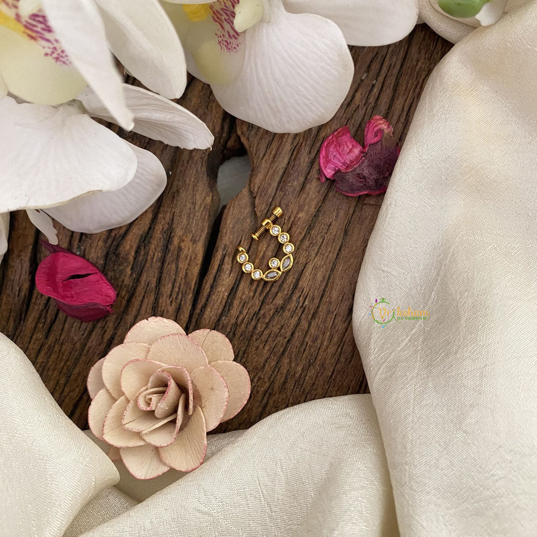 Enhance your elegance with Vriksham's Unique Gold Naths/Nose pin in a beautiful white hue. Intricately crafted for a luxurious touch, this piece is the perfect addition to your jewelry collection. Elevate your style with this exquisite accessory that exudes sophistication and exclusivity.