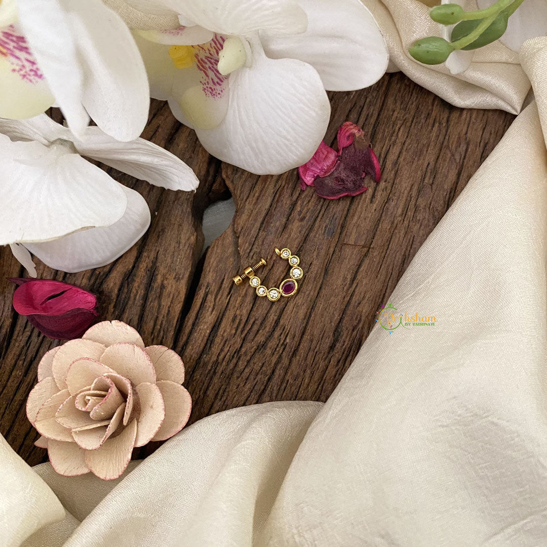 Elevate your style with Vriksham's Unique Golden Naths/Nose Pin in a stunning Bird design of Red and White. Crafted with luxurious detail, this piece is sure to add an elegant touch to any outfit. Stand out from the crowd with this exclusive and sophisticated accessory.