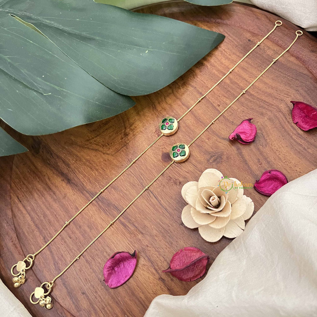 Discover timeless elegance with this stunning green floral stone pendant anklet. Each piece showcases a carefully selected gemstone adorned with delicate floral motifs that radiate understated luxury. The verdant hue complements both traditional and modern wardrobes, making it a versatile addition to your jewelry ensemble. Designed for the discerning wearer, this anklet combines artistic craftsmanship with refined aesthetics. Whether worn for special celebrations or as an everyday accent, it brings an air of sophistication and grace to any occasion. A treasured piece that reflects your appreciation for quality artisanal jewelry.