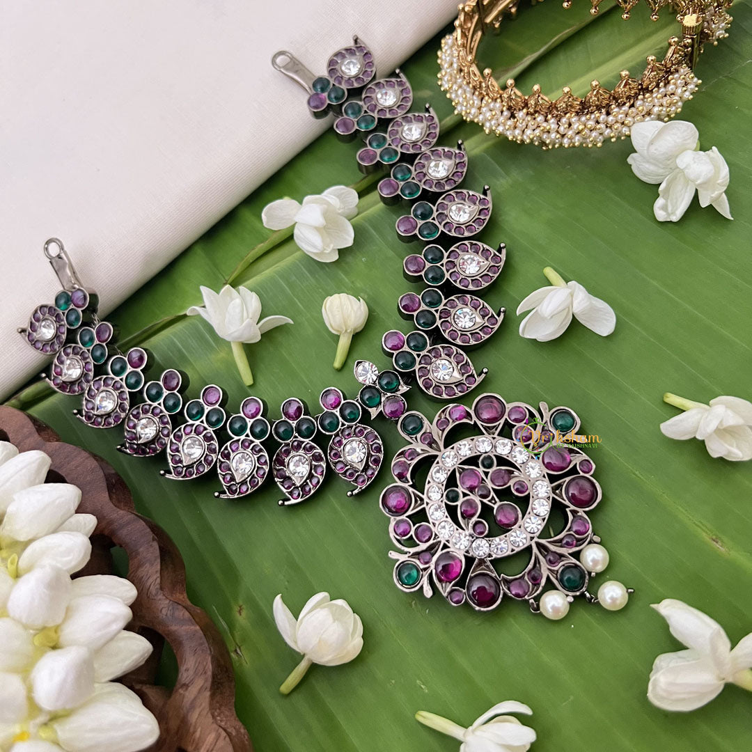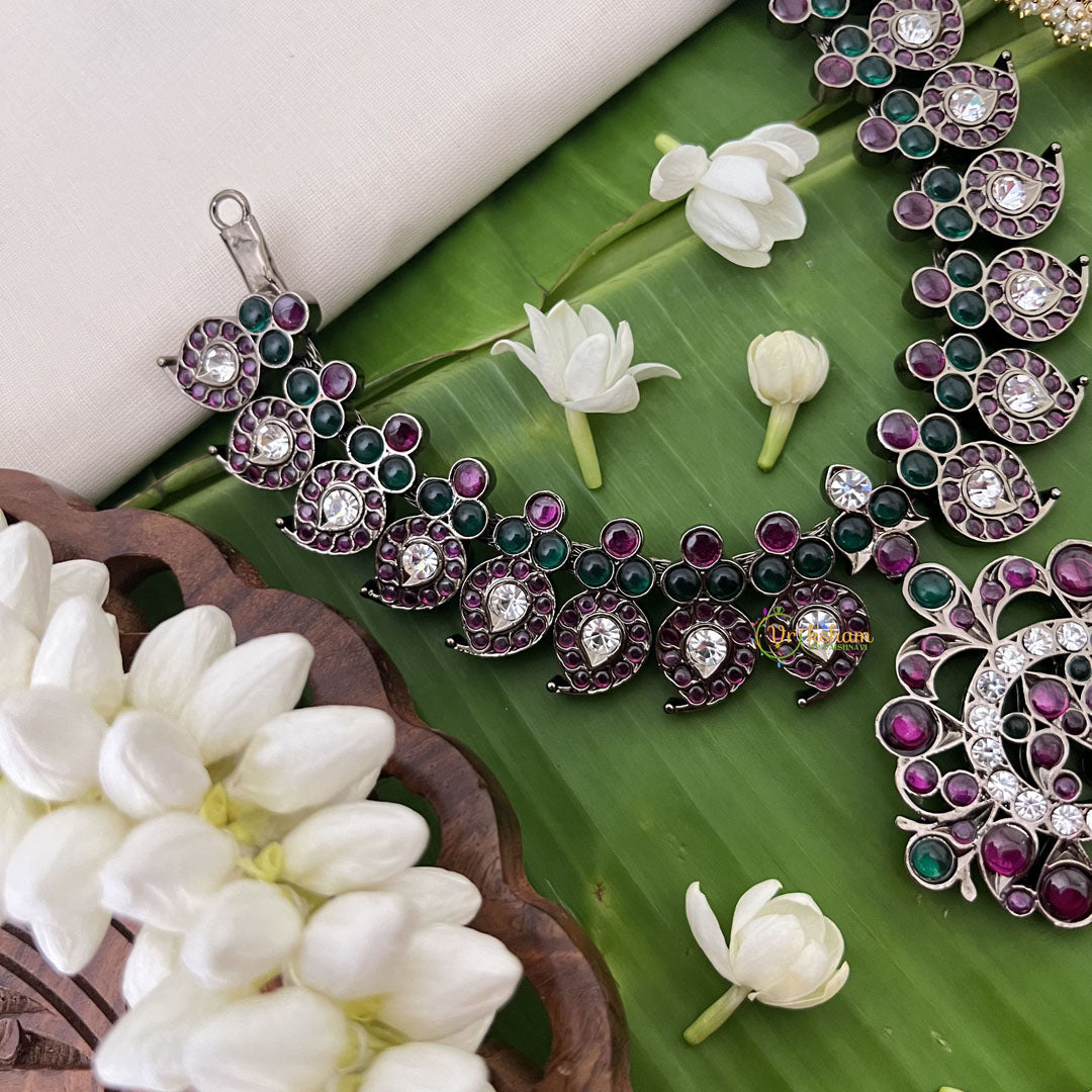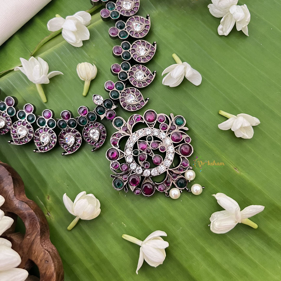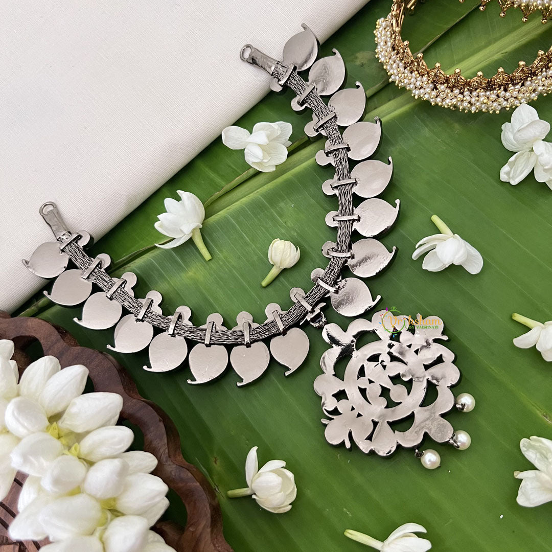 This exquisite short neckpiece features a unique Maanga style pendant with a striking black polish finish. Adorned with precious Kemp stones, it offers a refined blend of traditional charm and contemporary elegance, perfect for enhancing any sophisticated ensemble.