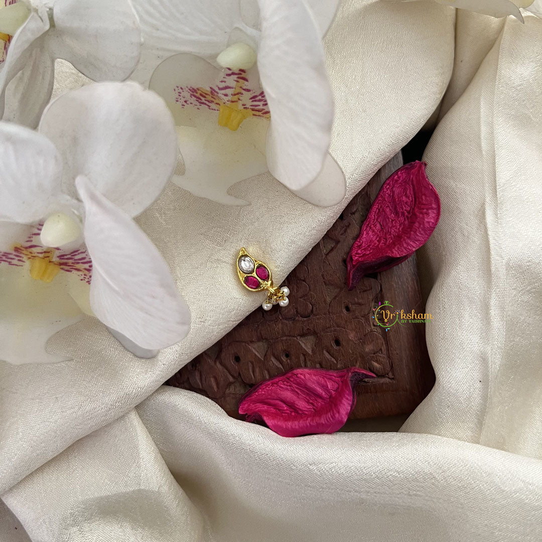 Introducing Vriksham Unique Maanga Style Red Jadau Kundan Nath-Pearls, a masterpiece of elegance and luxury. Crafted with intricate Jadau Kundan, this Nath exudes sophistication and exclusivity. Adorned with lustrous pearls, it will elevate your style and make you stand out in any occasion. Make a statement with Vriksham.