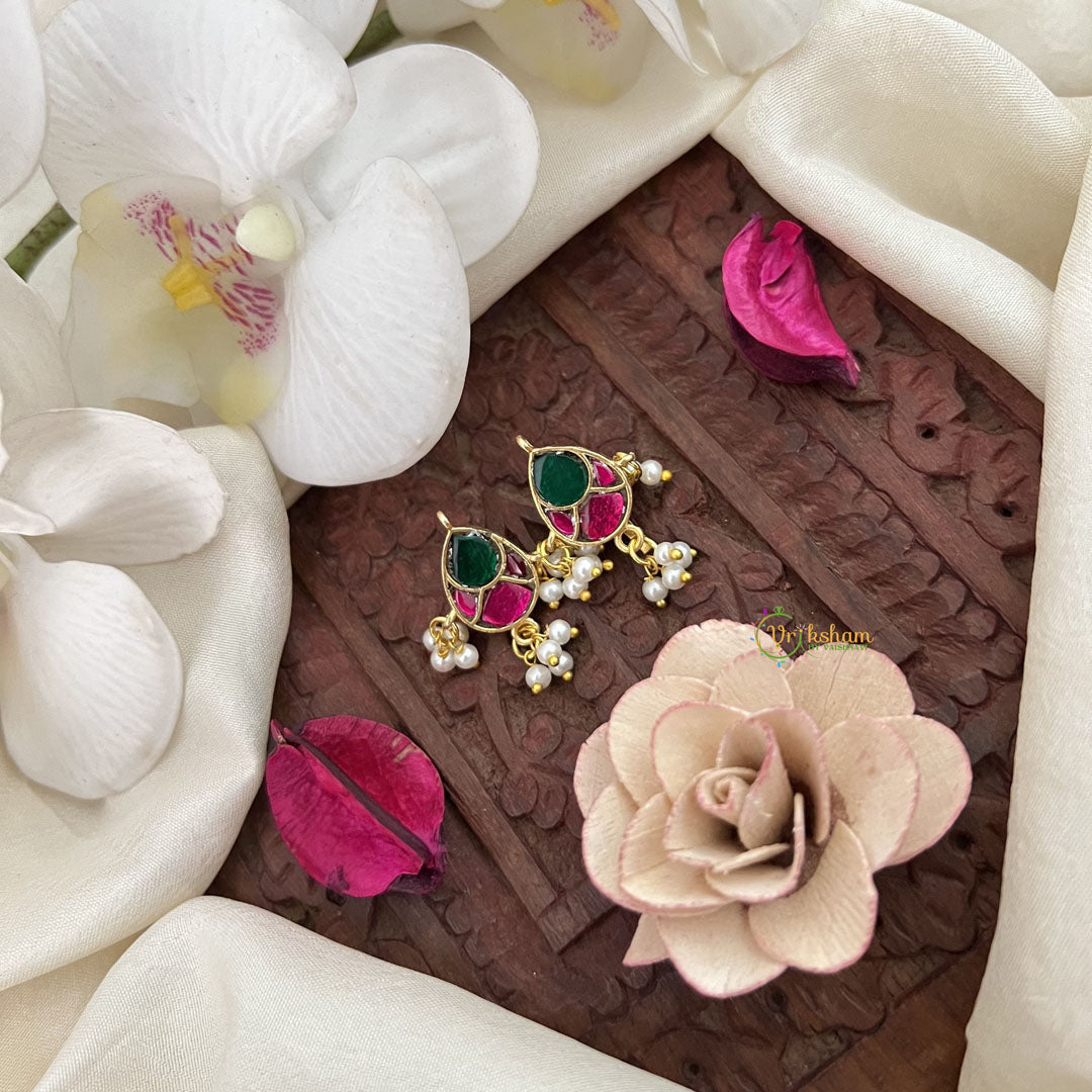 Elevate your style with Vriksham's Unique Maharashtrian Style Press Bugadi. Adorned with rich red and green hues and embellished with lustrous pearls, this Bugadi will add a touch of sophistication to any traditional outfit. Experience the opulence of Maharashtrian culture with this exclusive piece.