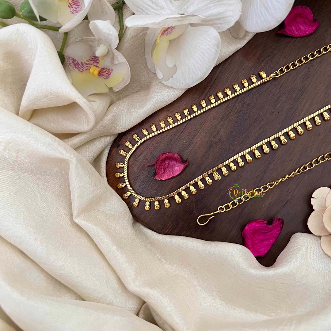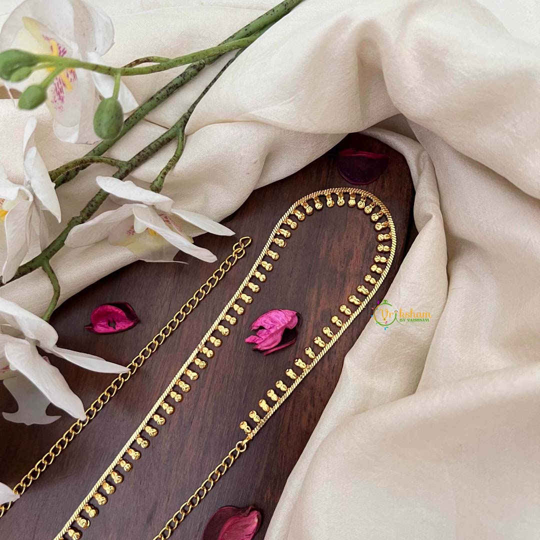 Adorn your waist with this exquisite gold-plated hip chain, showcasing distinctive motifs that reflect artisanal craftsmanship. Each carefully designed element tells a story of elegance and cultural richness, making this piece a conversation starter. The warm, lustrous finish complements all skin tones while adding a touch of opulence to your ensemble. Whether draped over dresses or paired with traditional wear, this chain transforms any outfit into a statement of refined taste and individuality.
