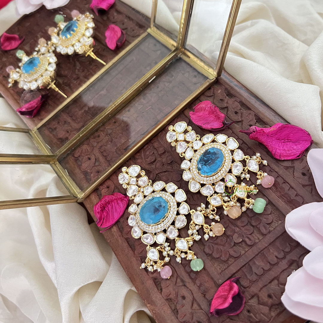Exquisitely crafted oval danglers in a serene sky blue hue that captures ethereal elegance. The distinctive silhouette creates a sophisticated visual rhythm, moving with refined grace and subtle luminosity. These unique earrings offer a contemporary interpretation of classic forms, their tranquil azure tone providing a distinguished accent that complements both delicate ensembles and bold statements with artistic sensibility.
