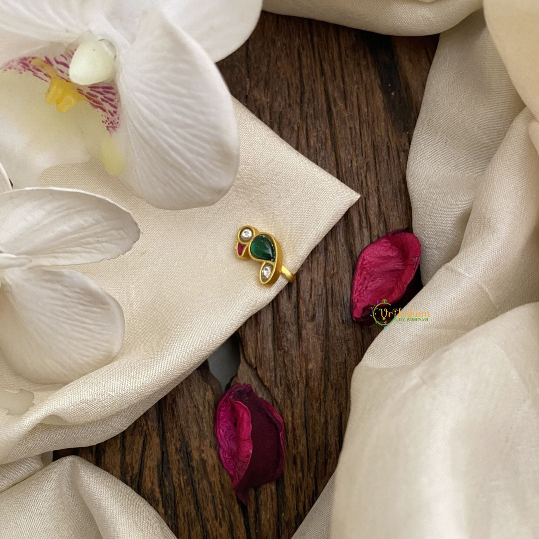 Add a touch of exotic elegance to your style with the Vriksham Unique Parrot Jadau Kundan Stone Nath/Nose pin. This luxurious piece features intricate jadau and kundan work, beautifully crafted into a parrot design. Elevate any outfit with this premium nath that exudes sophistication and exclusivity.
