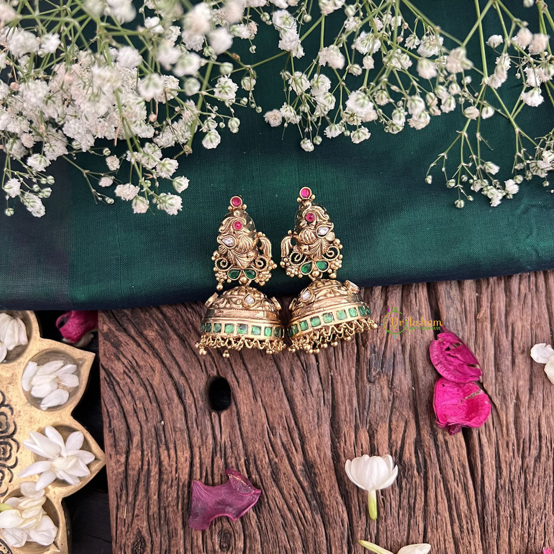 Elevate your style with Vriksham Unique Peacock 1 gm gold Jhumka. Crafted with intricate details and a touch of luxury, these Jhumkas are a timeless piece that adds glamour to any outfit. The peacock design symbolizes grace and beauty, making it a perfect accessory for any occasion. Meticulously handcrafted using 1 gm gold, it exudes elegance and sophistication.