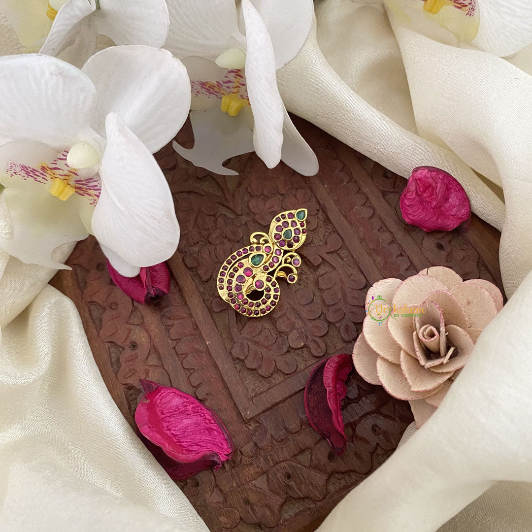 Add a touch of elegance to your saree with our Vriksham Unique Red Green Kemp Stone Saree Pin-Saree Brooch. Featuring rich hues and kemp stone detailing, this brooch adds a sophisticated flair to any outfit. Elevate your look and stand out from the crowd with this exclusive piece.
