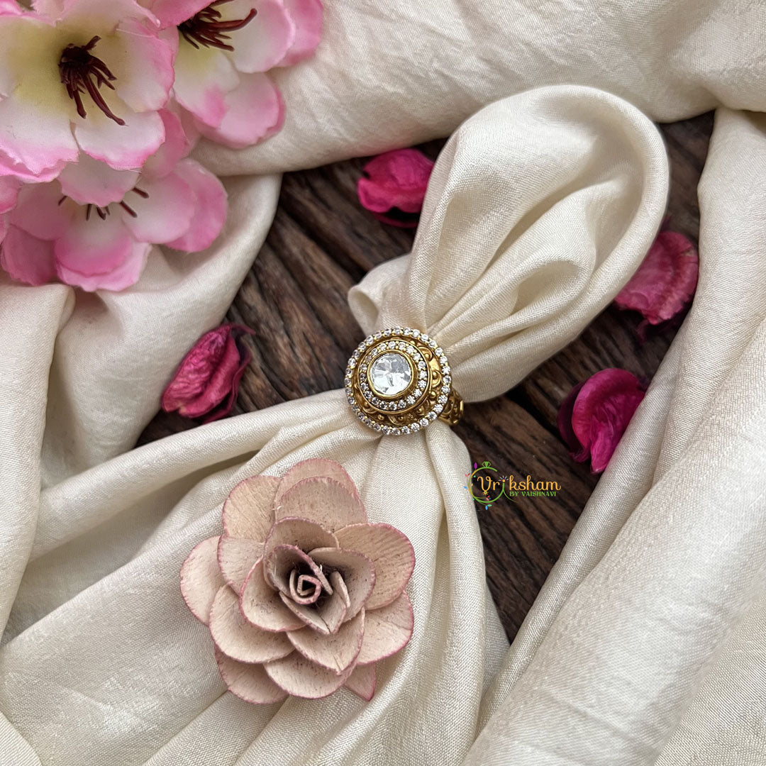 The Vriksham Unique Round Shape Mossanite Stone Finger Ring presents a captivating round mossanite stone set in an elegant, distinctive design. This sophisticated piece enhances any outfit with its brilliant sparkle and refined craftsmanship, making it an ideal choice for those who appreciate timeless beauty with a unique touch.