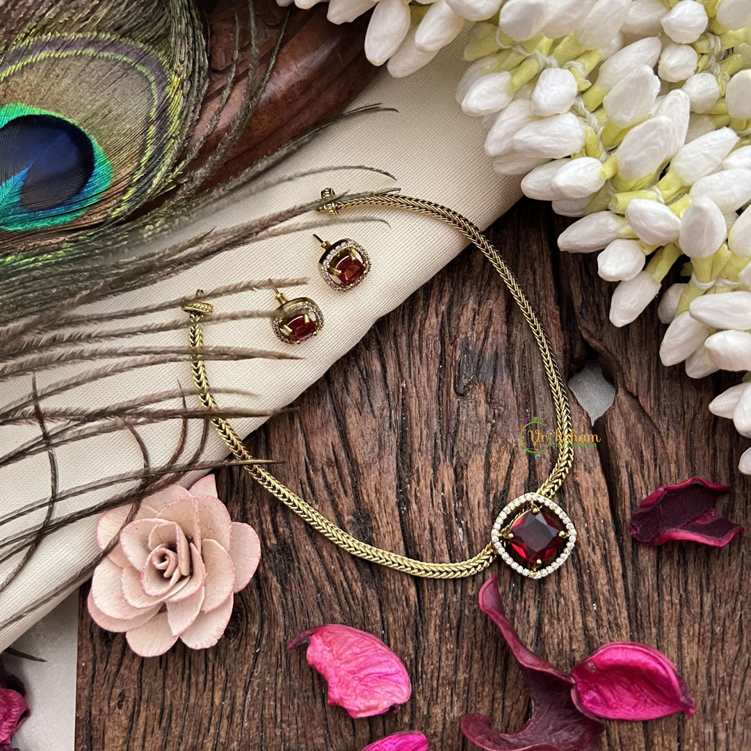 Vriksham Victorian Diamond Square Pendant Neckpiece-Red-VV1975